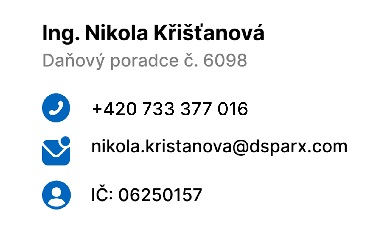 Dbám na to, aby každý klient porozuměl aktuální legislativě, využil dostupné slevy a benefity a měl jistotu, že jeho daňové záležitosti jsou v pořádku. Mým cílem je stát se Vaším spolehlivým partnerem ve světě daní – ať už hledáte jednorázovou pomoc, nebo dlouhodobou spolupráci.